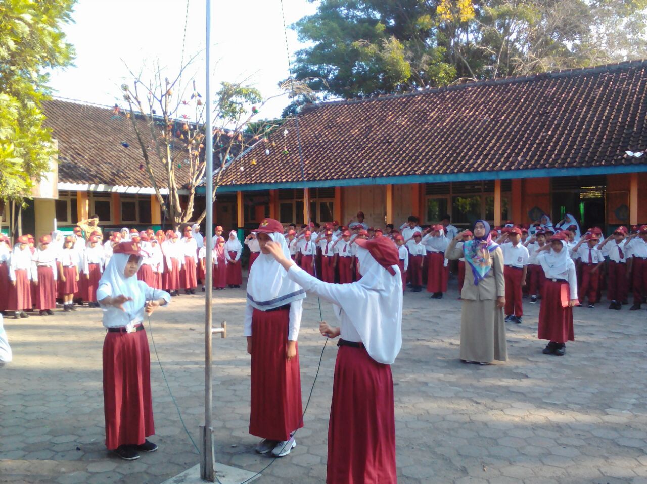 Pagi ini cuaca sedikit mendung, sehingga upacara berjalan dengan tenang. Bertugas sebagai Pembina Upacara adalah Ibu Sriyatun,S.Pd. Dan